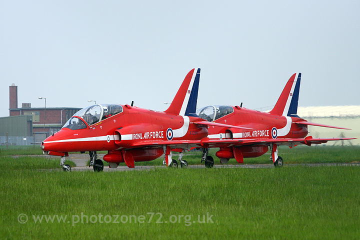 A somewhat frustrating journey later - thanks to some lunatic drivers seemingly determined to take me off the road, and a sat-nav which had it's own ideas - very different to mine - of our desired route, leading to a detour through central Lincoln, I got to Scampton with 15 minutes to spare. I'd done my research and knew that the best spot for photos was at the end of the base, where there is a lower section of fence...however, this spot is a good 15 minute walk away from the car park so I knew I was going to be pushed for time - sure enough as I was dashing along the fence-line I heard the thrilling sound of the Hawks thundering along the runway, and taking to the air just to my left - wow! They take off in pairs, and you find yourself counting them as they go - I was expecting three pairs, then a single, so was a little surprised to see that the final takeoff was another pair - presumably Red 8 Dave Davies was getting a run-out! By the time they had assembled into formation I was in position, camera at the ready....